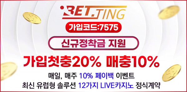 지금 바로 BETTING을 가입할 수 있는 유일한 기회입니다. 스포츠 경기를 더 재미있게, 더불어 생생한 현장감을 느낄수 있는 라이브카지노도 함께 즐겨보세요.